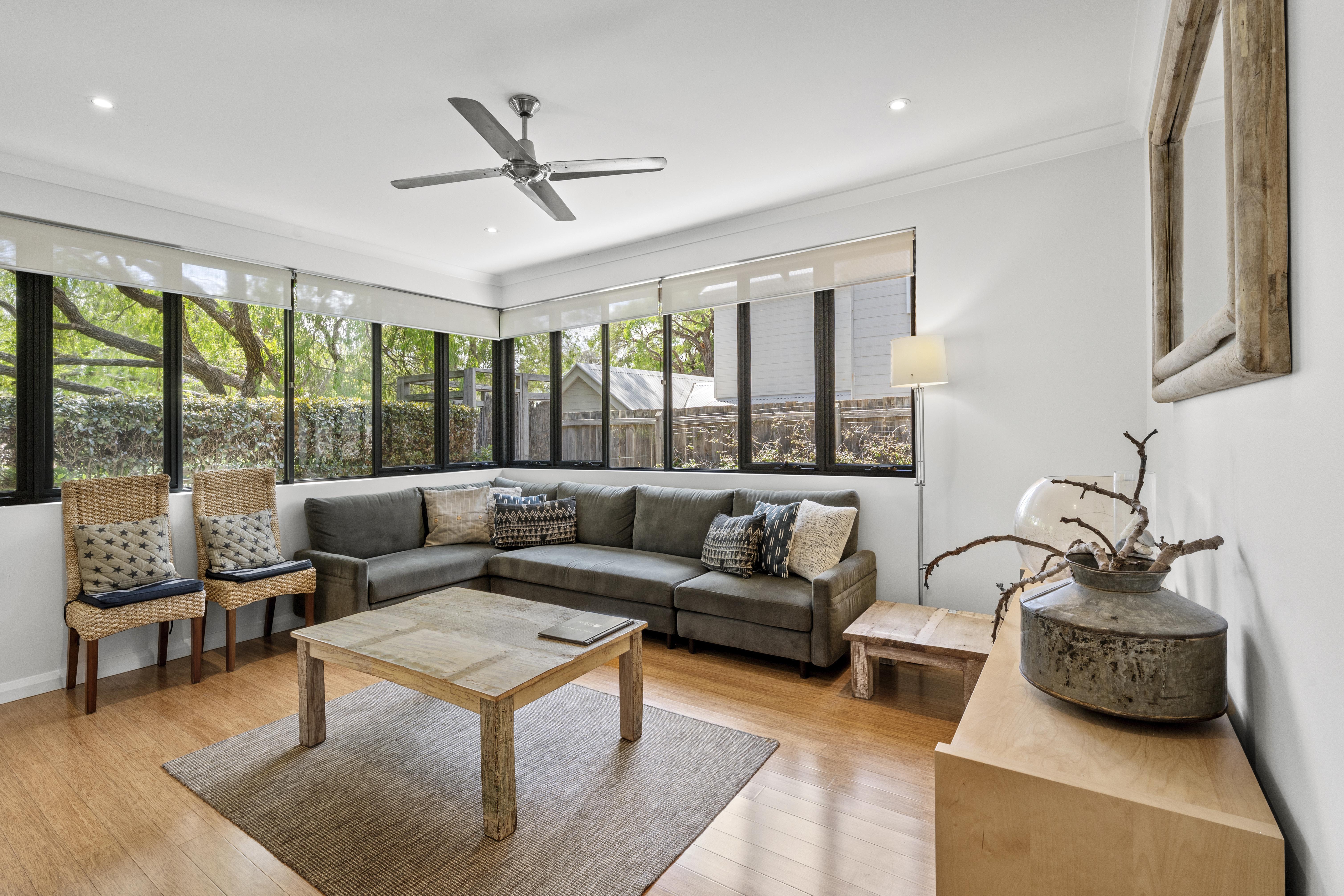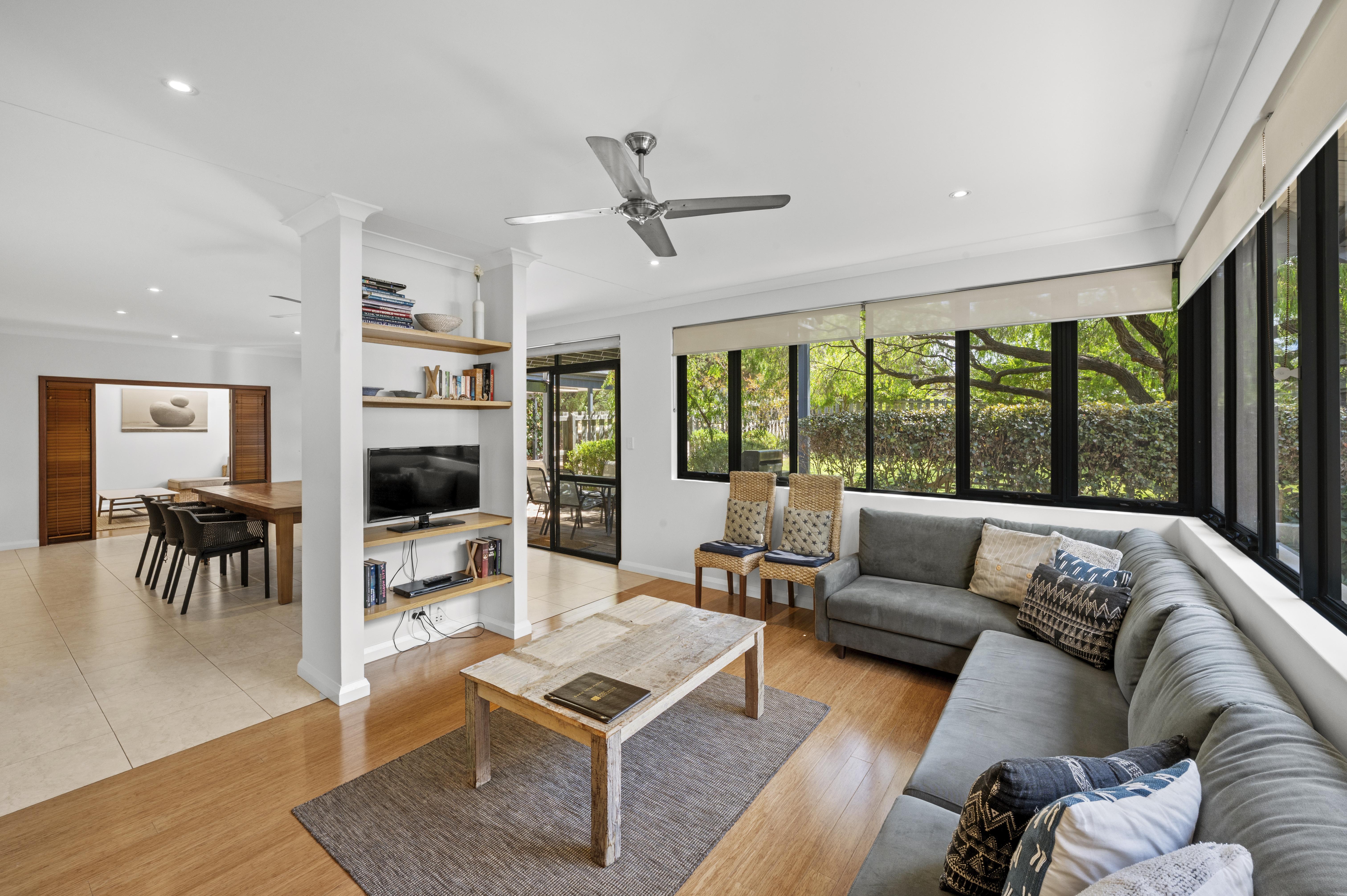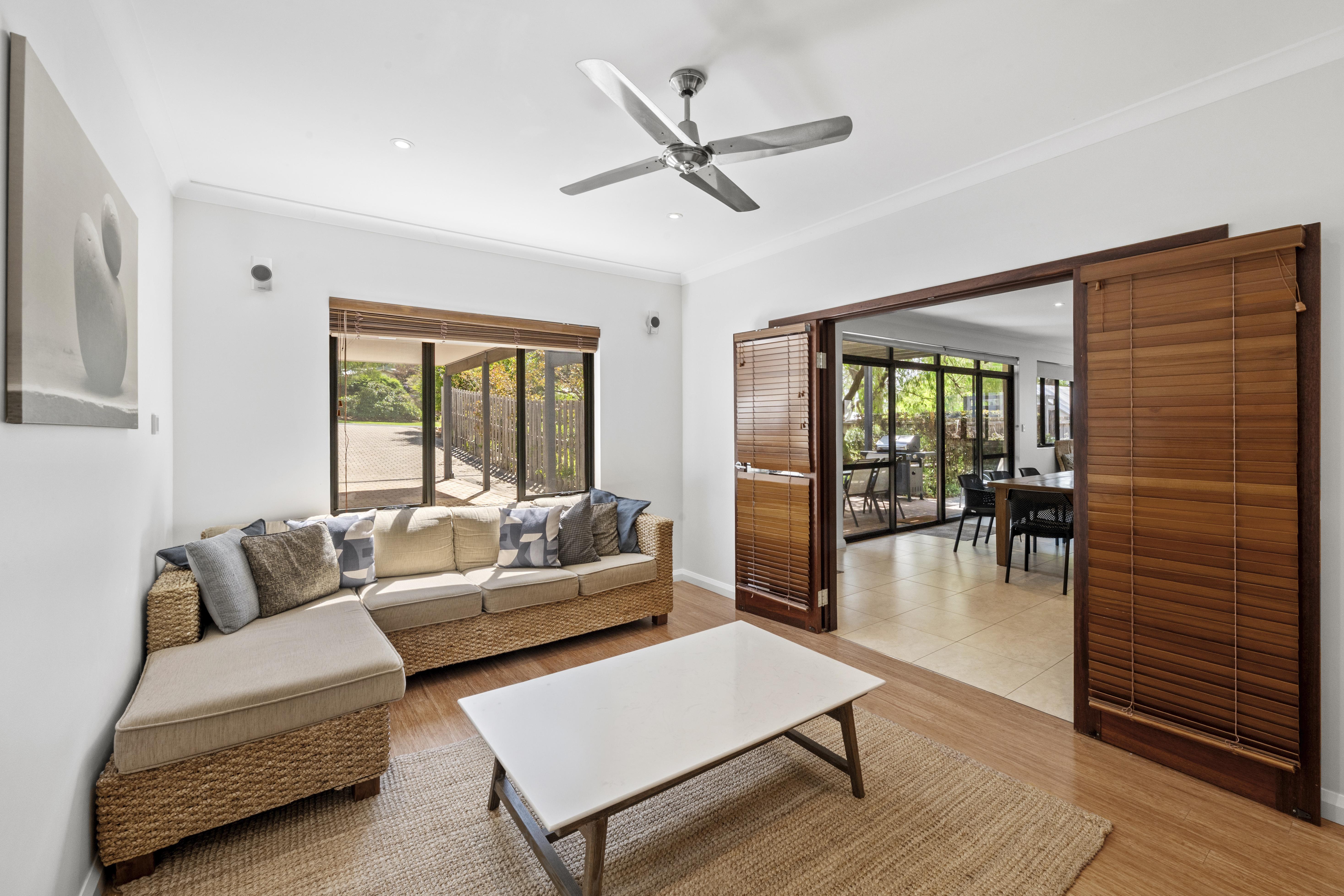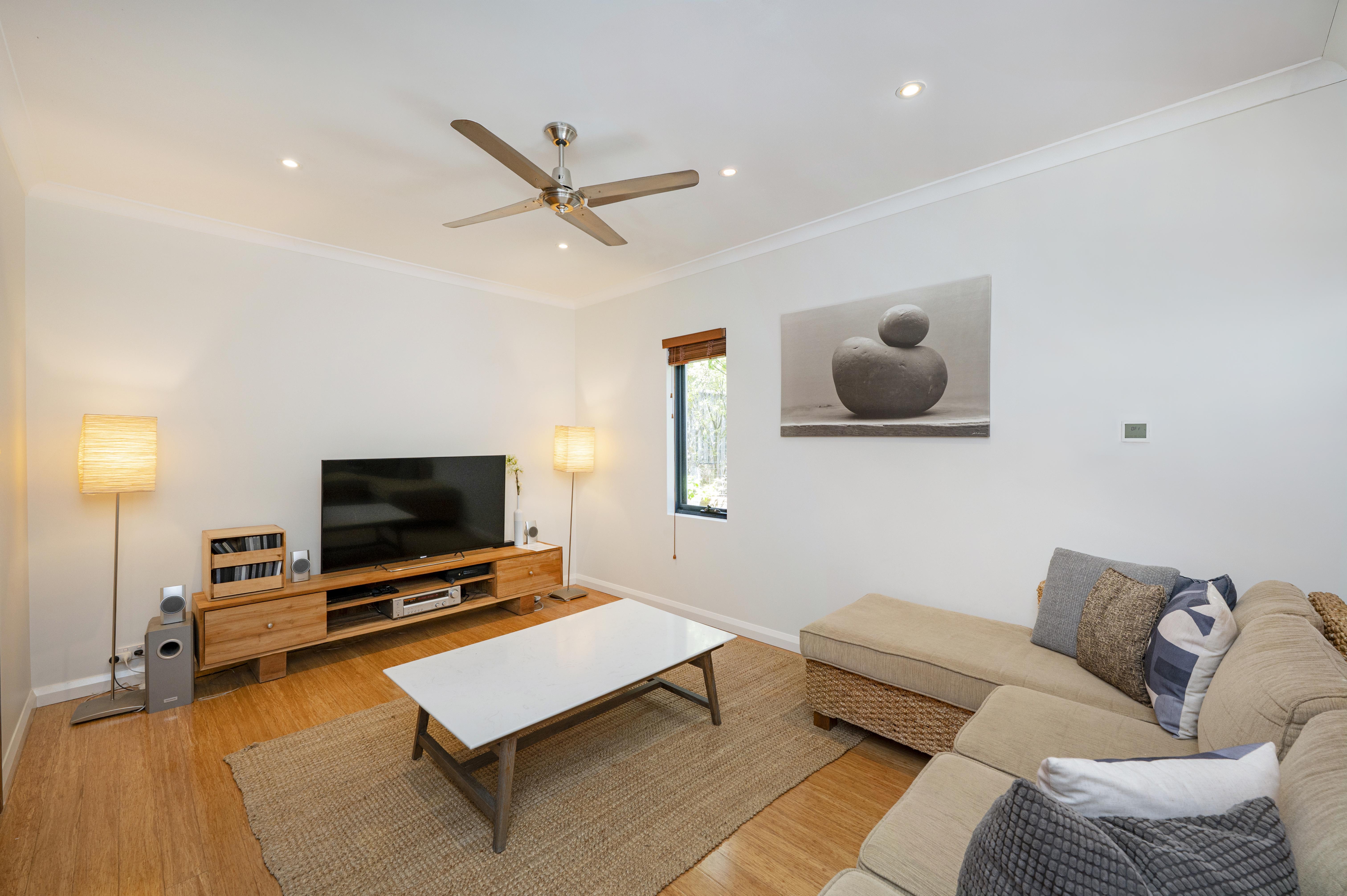 Theatre room - lounge suite, TV, DVD Player & ceiling fan