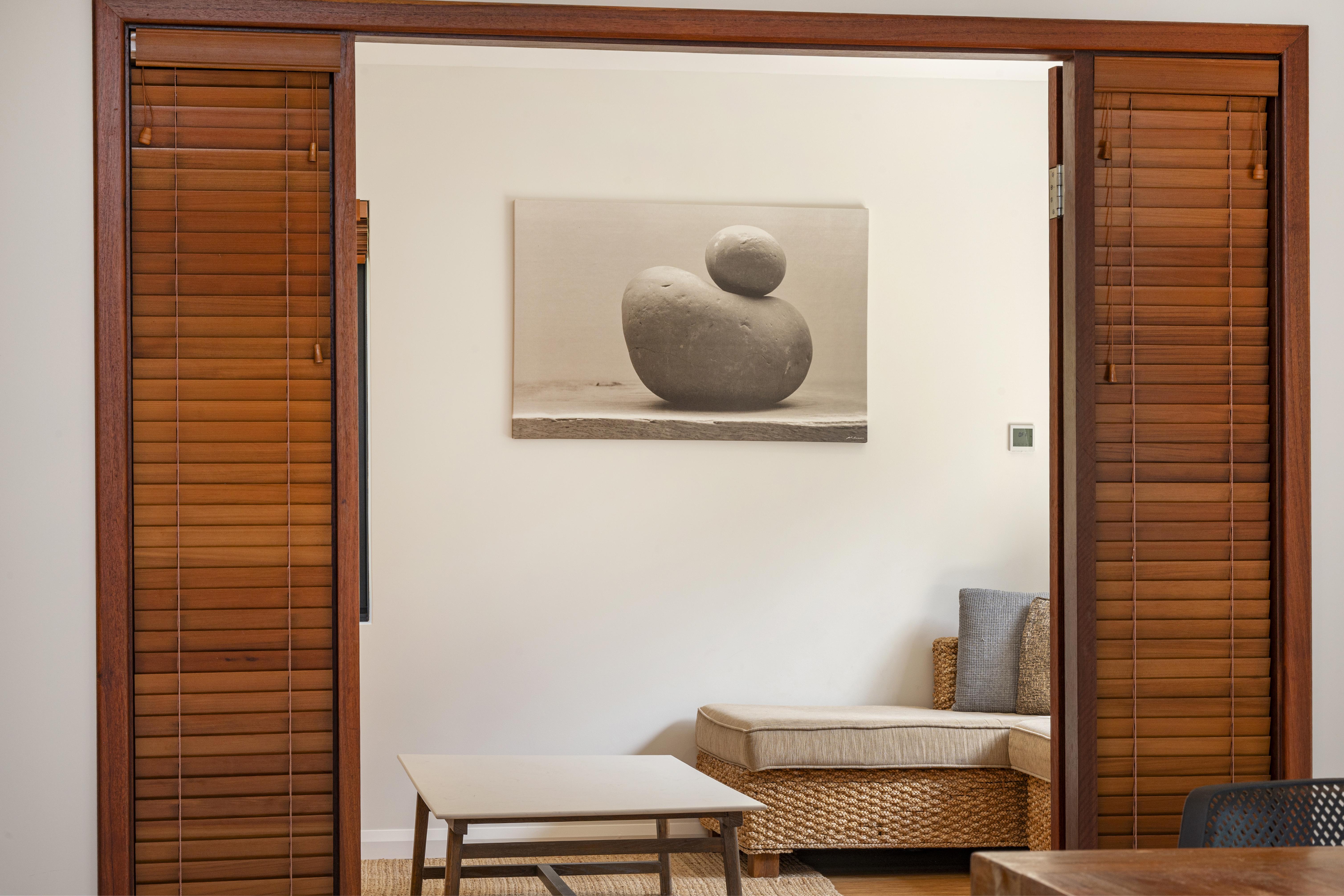 Downstairs there are two separate living areas both with comfortable seating each have separate TV's. One area can be closed off with French doors.