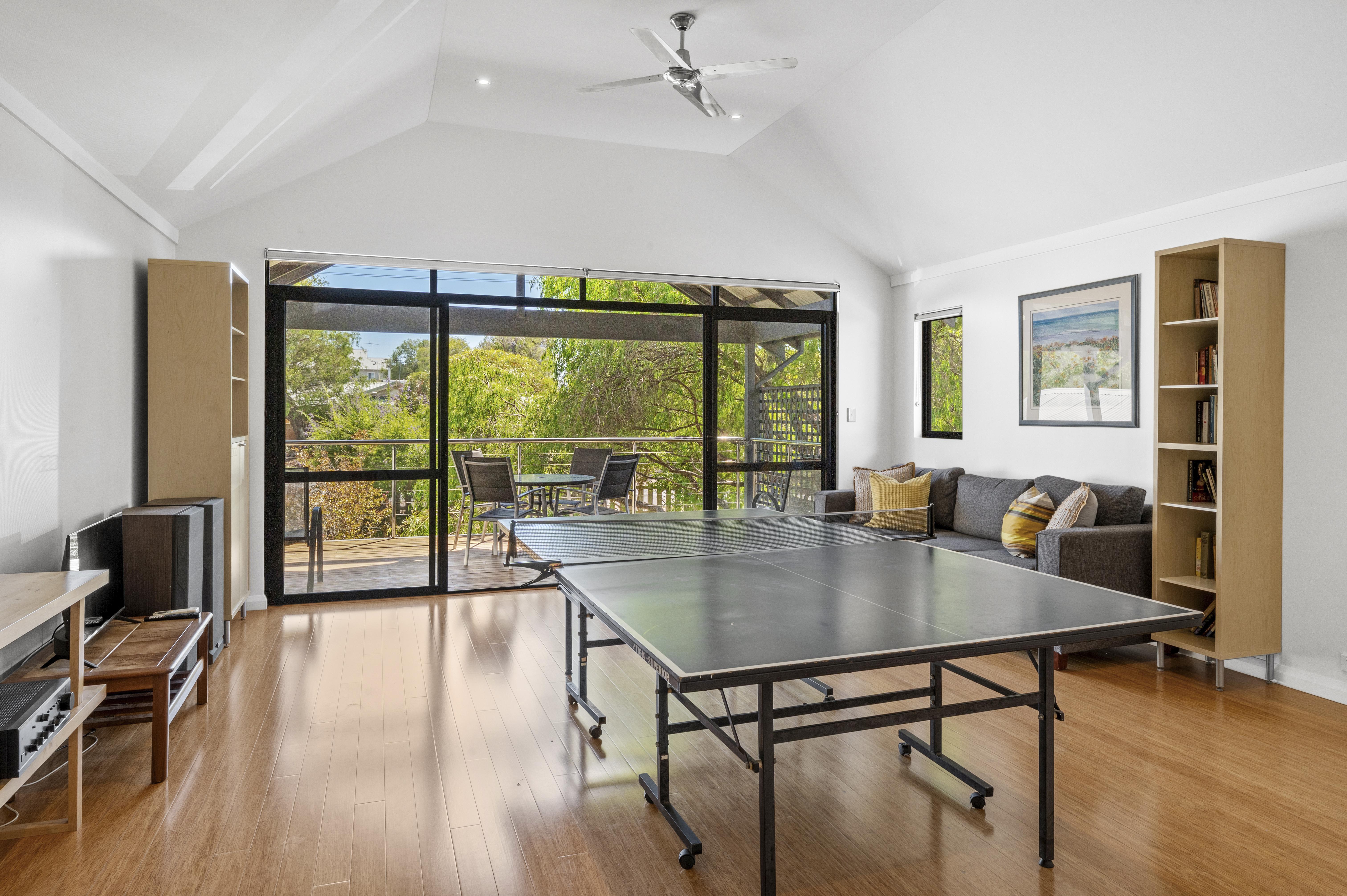 Games room - TV, DVD player, Table Tennis Table, Reverse Cycle Air-conditioner, Ceiling Fans, Balcony With Outdoor Setting