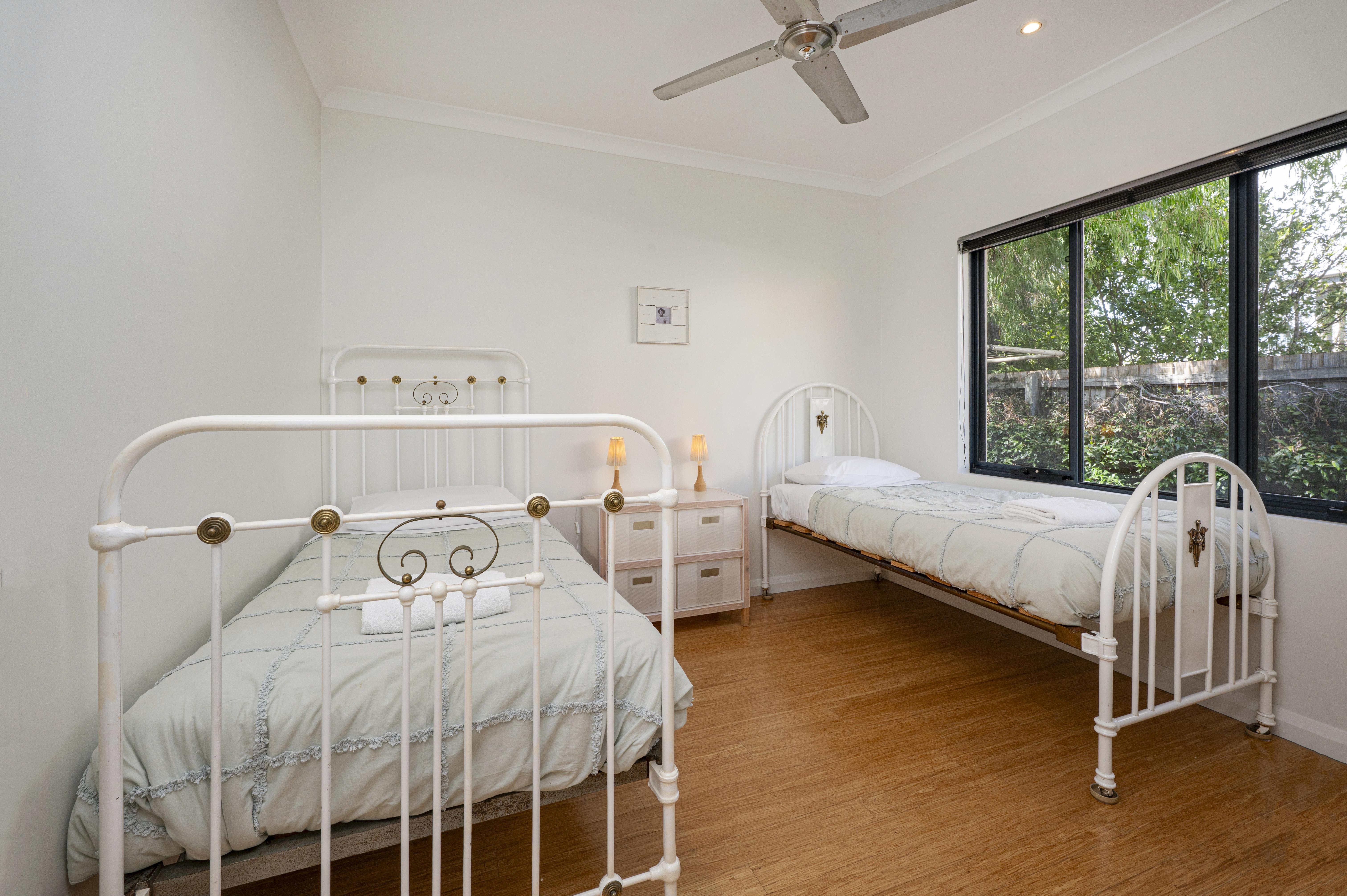 Bedroom Two - two single beds & ceiling fan