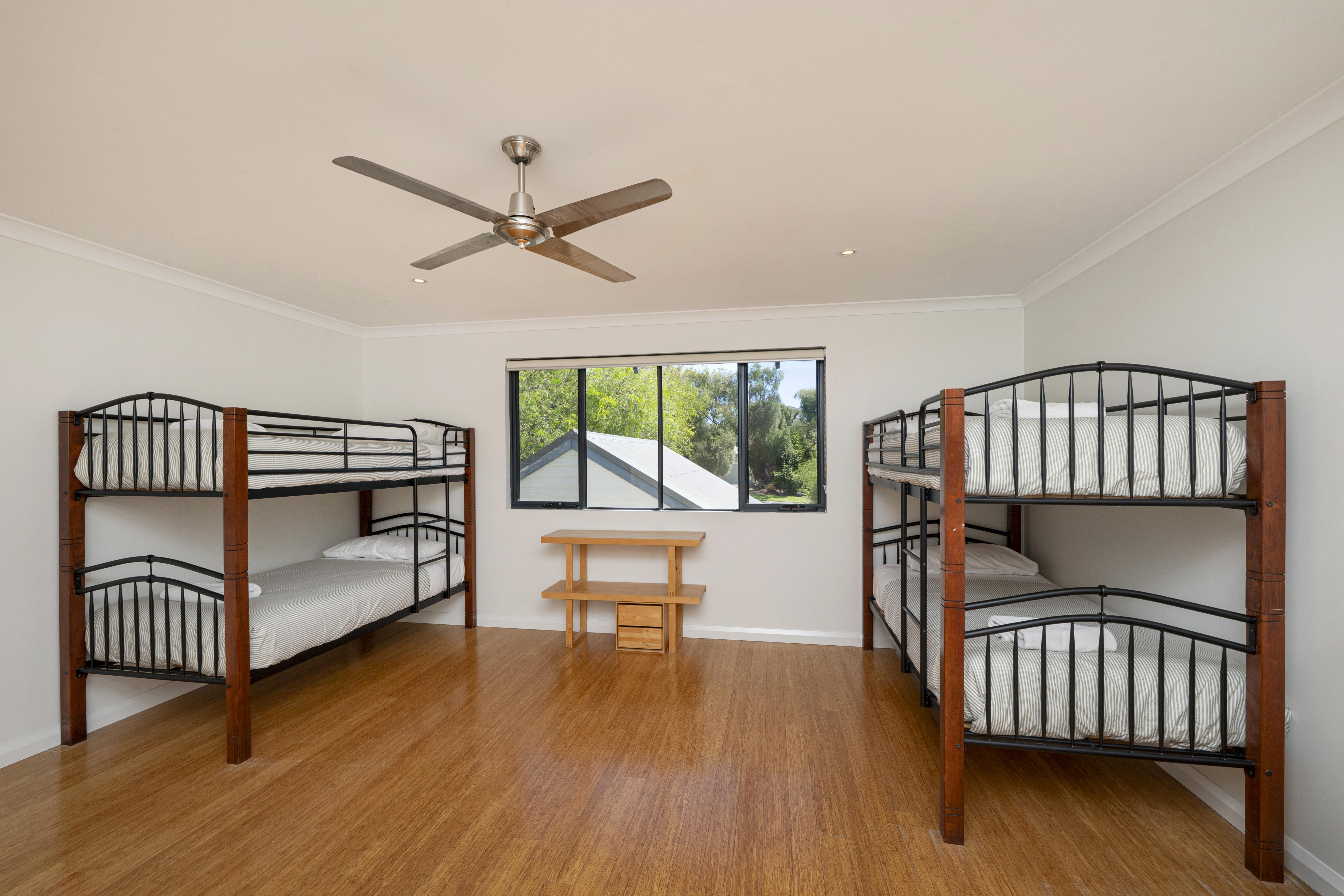 Fourth bedroom - two sets of single bunk beds, ceiling fan