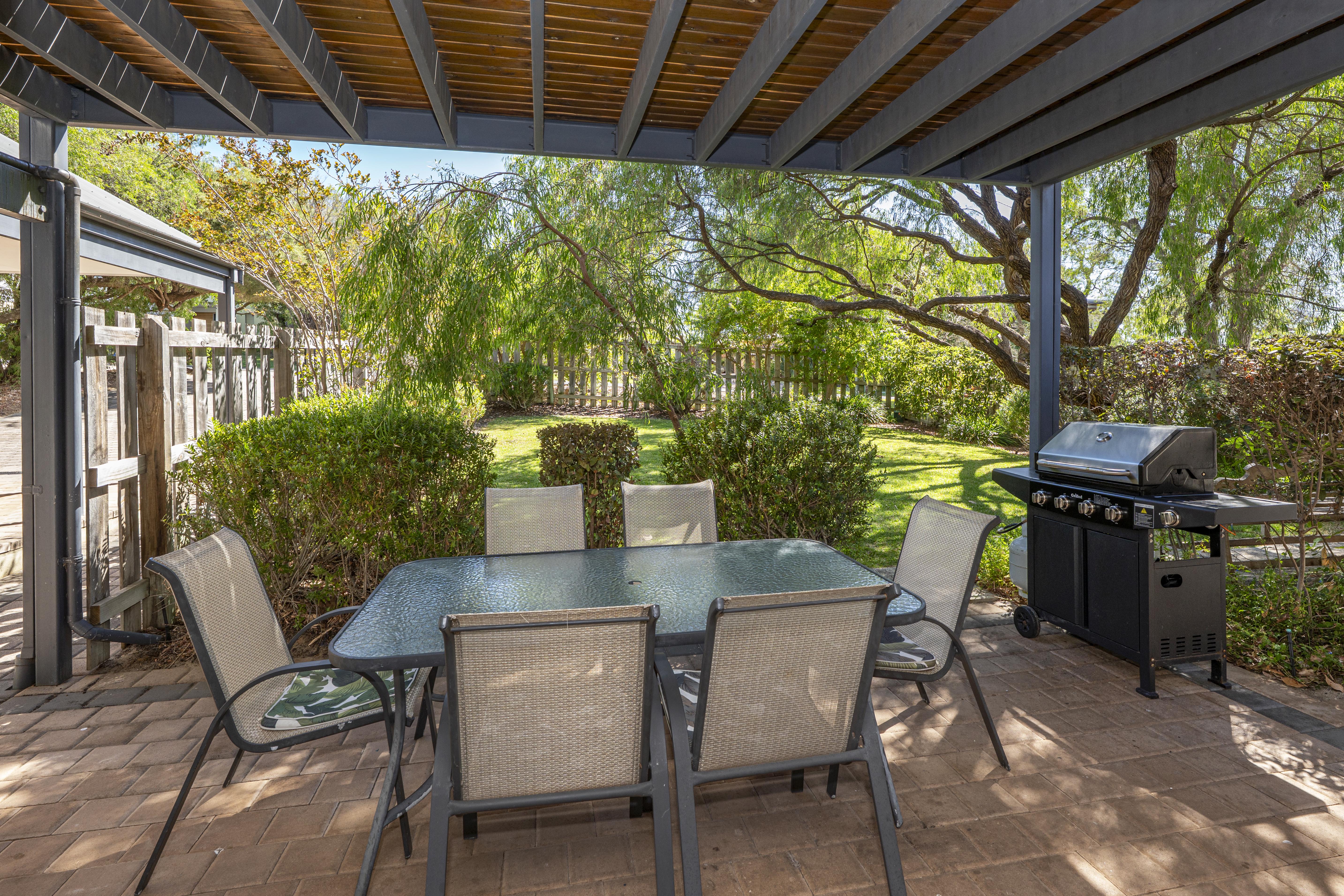 The outdoor shower makes it easy to come home from a long day at the beach and wash off before preparing for a great night out or entertaining with the BBQ, outdoor setting and local wines.