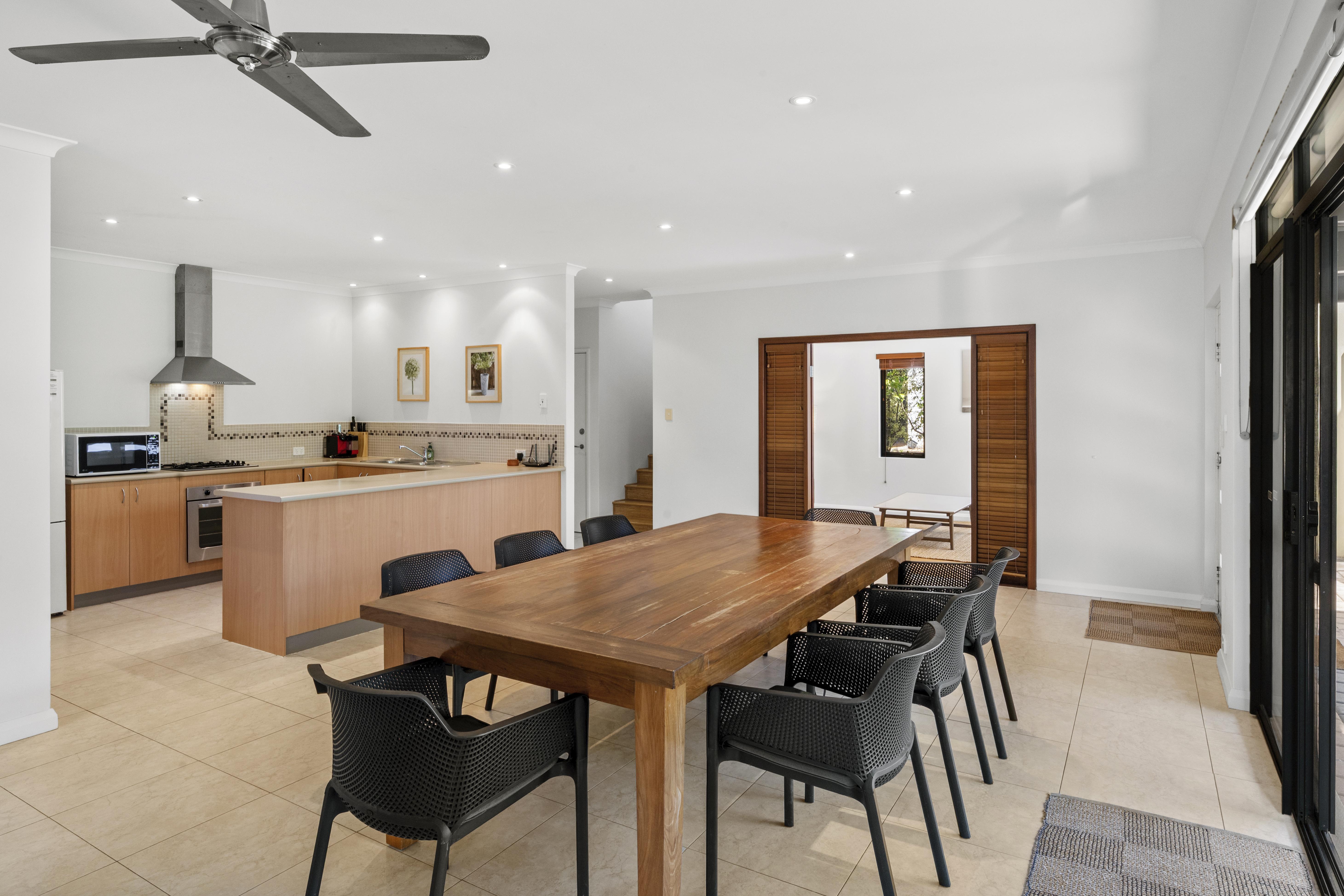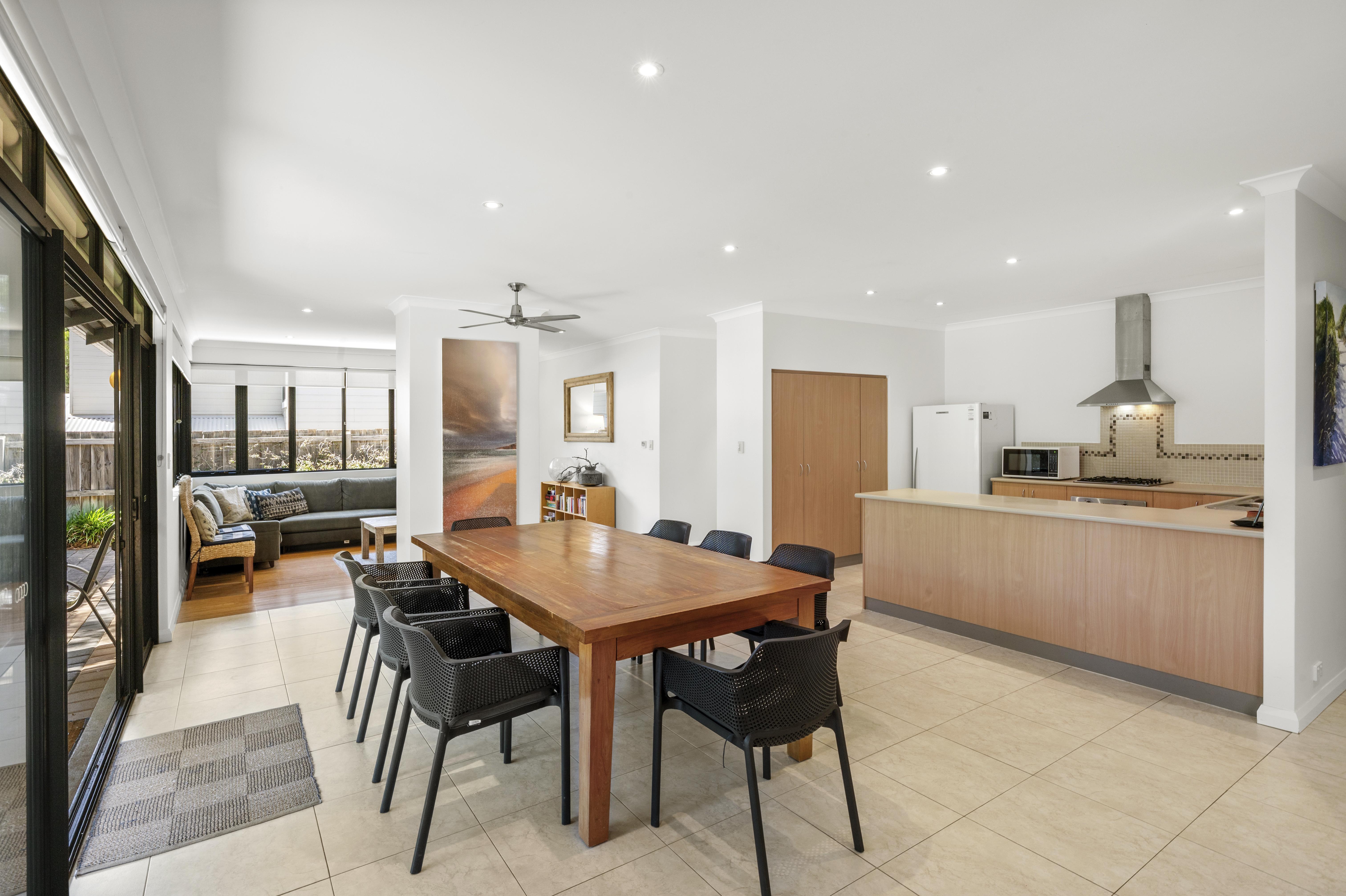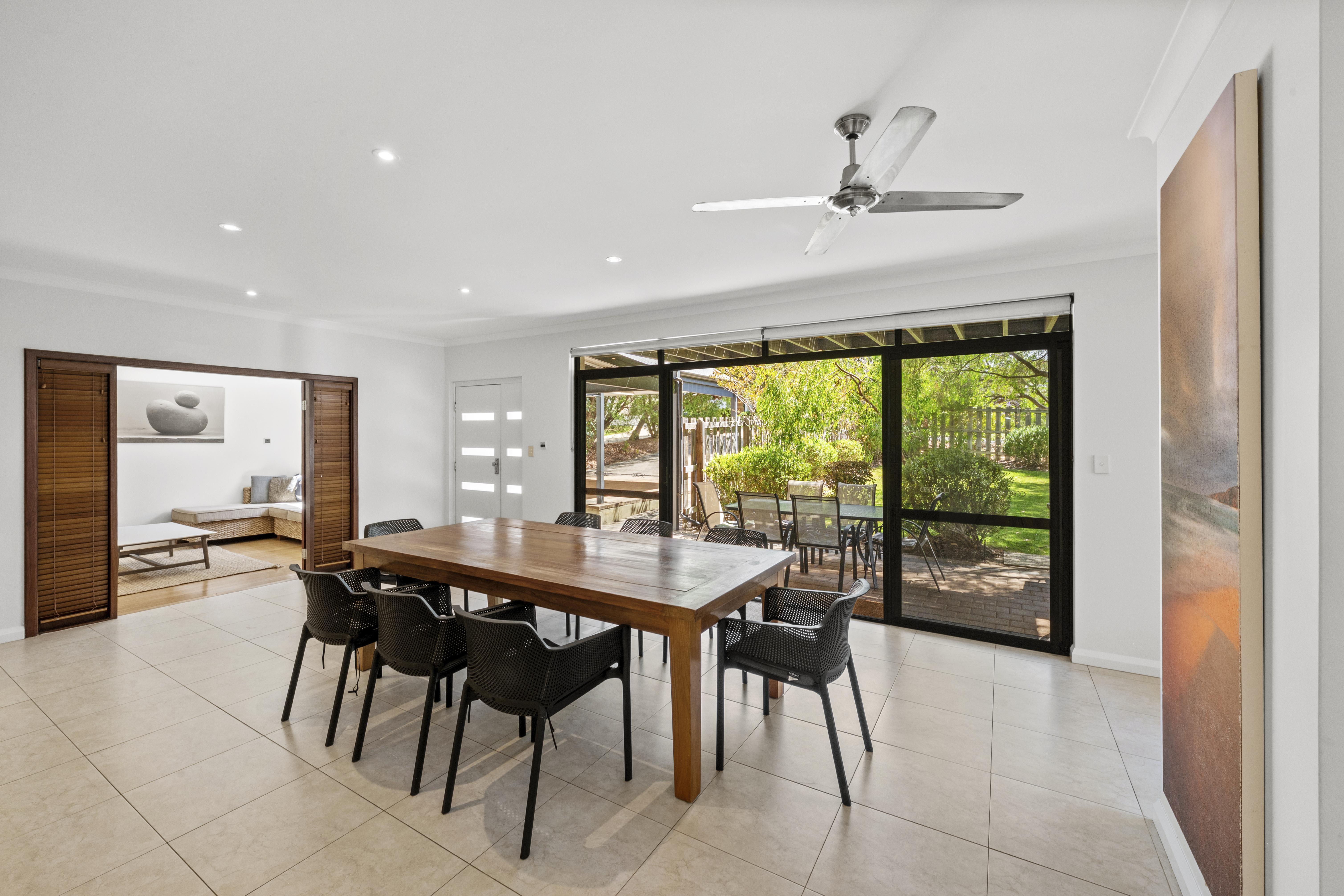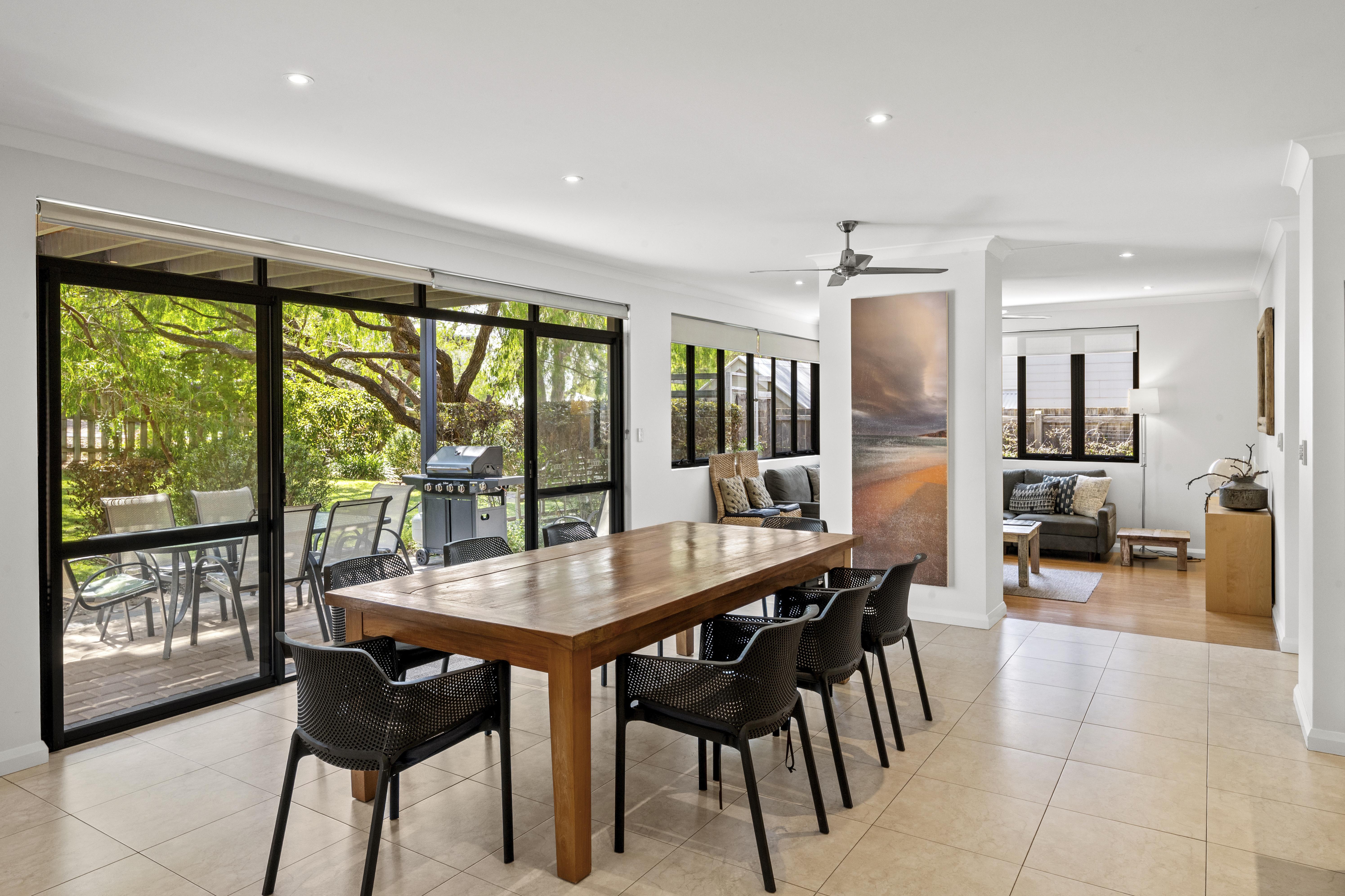 The kitchen overlooks the dining area, complete with large dining table and chairs, sliding doors lead you out to the paved alfresco area, complete without door setting and barbeque, this home is the perfect place for families to enjoy their holidays.