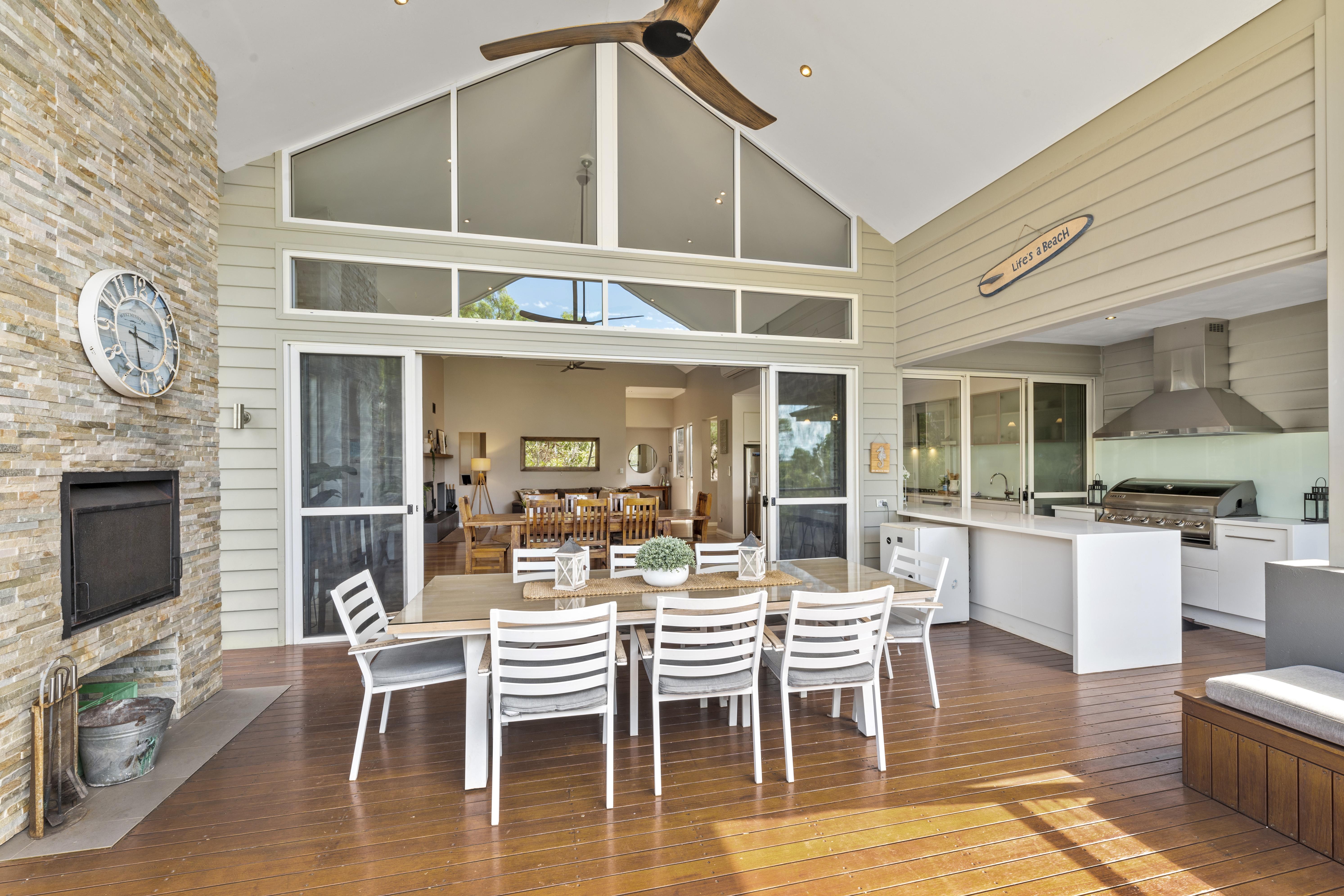 An amazing alfresco balcony area is where Red Robin Retreat distinguishes itself from the rest. Included is a formal outdoor kitchen with built in gas BBQ, bar/wine fridge, ceiling fan with the main feature being the amazing open wood fireplace, built into a stone clad chimney.