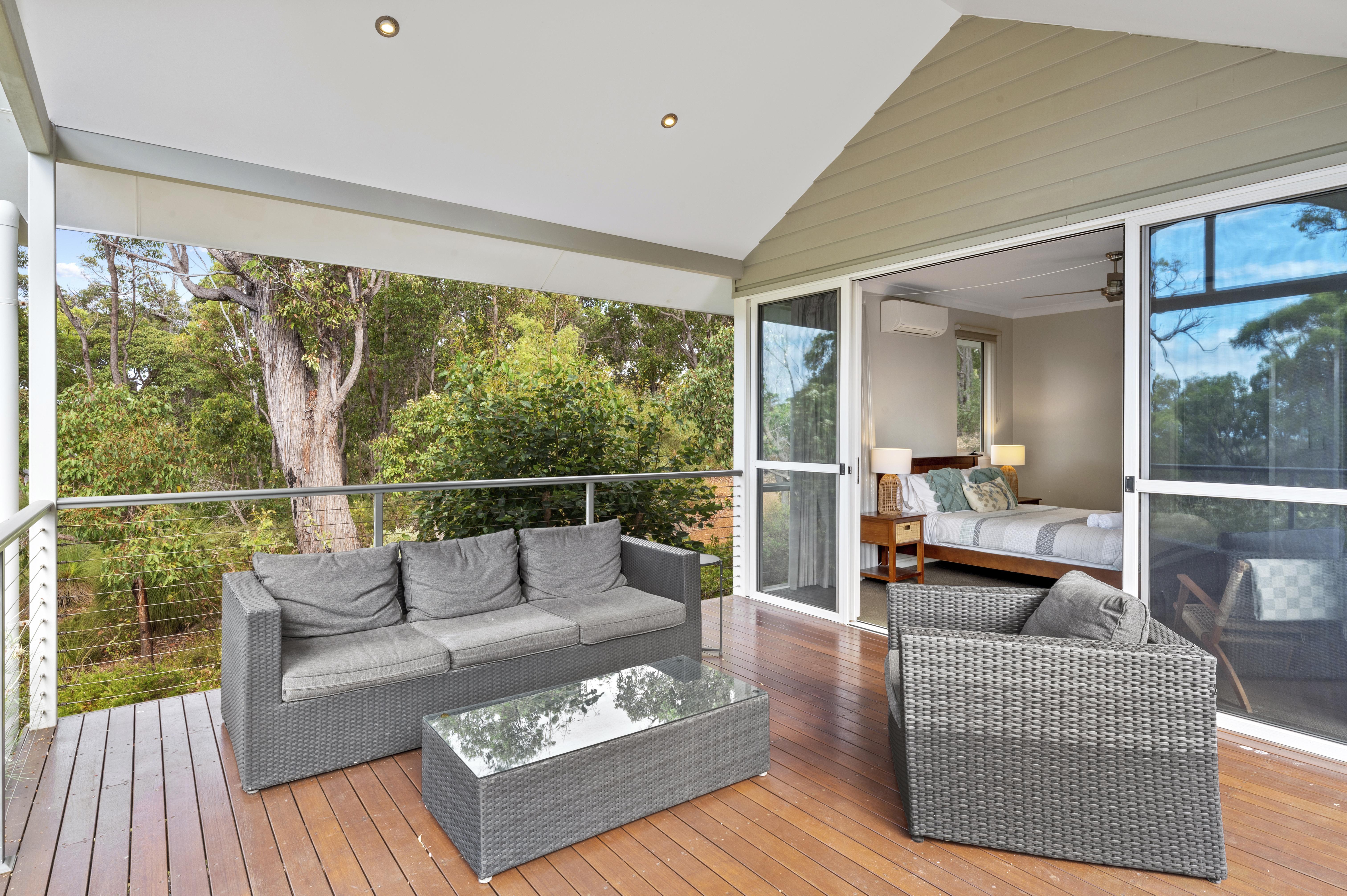 Overlooking the crystal clear waters of Geographe Bay, Red Robin Retreat is located high on the hill in Big Rock Reserve on 2.5 acres of Australian Bush. You'll feel a million miles from the hustle & bustle, yet you are on the doorstep of the Dunsborough townsite, packed with cafes, restaurants & local galleries.
