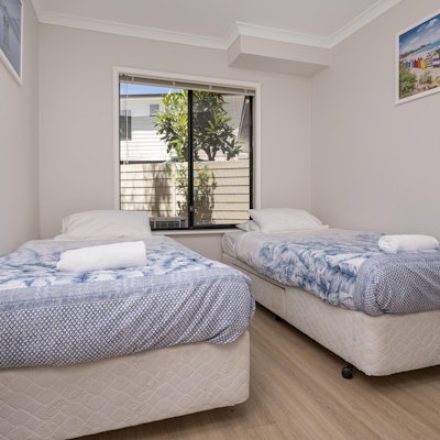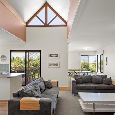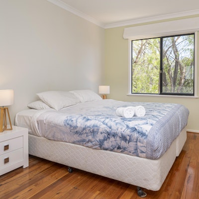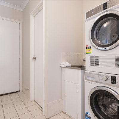 Upstairs features the spacious master suite with own ensuite, while the three minor bedrooms are downstairs, two of which comprises two king single beds, while the third boasts a queen bed, they all share the main bathroom. The laundry is fully equipped with a washer & dryer if you feel the need to do some washing while you're on holidays.