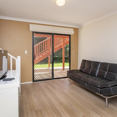 Downstairs is another living space which accesses the treed & very private backyard - another quiet corner to recline with a book or allow the kids to have their own private retreat.
