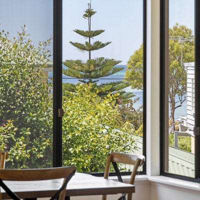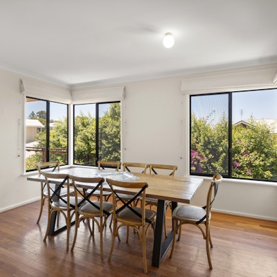 Just one house off the Old Dunsborough foreshore this elegant beachside home comprises 4 bedrooms, 2 bathrooms and a beautiful ocean view of Geographe Bay from the upper deck, living, dining & kitchen zones.